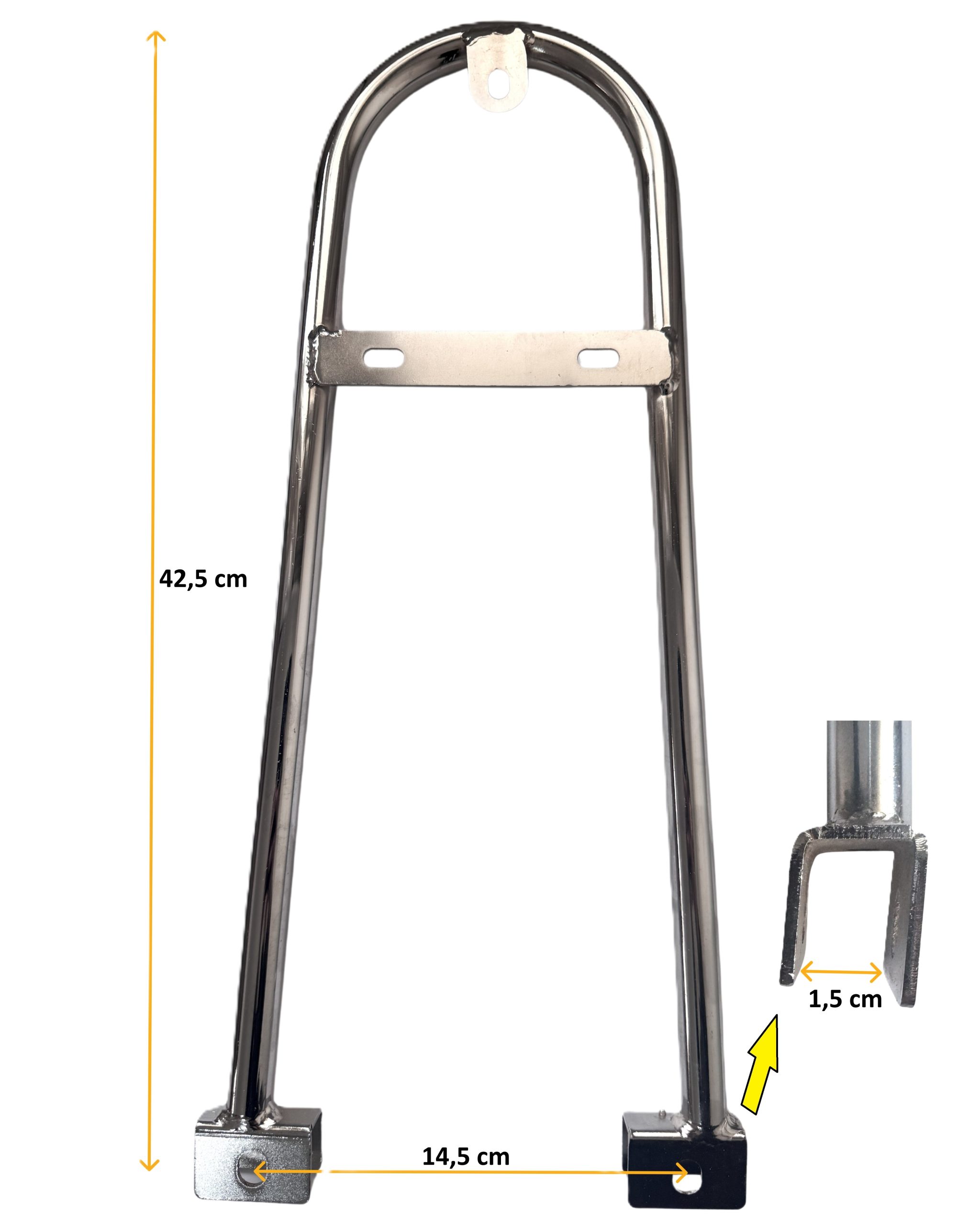 - Motorunuzun port bagaj demirine göre U-tip ve T-tip sissybar ayaklarından motorunuza en uygun olanını seçebilirsiniz. Sissybar ayakları motorunuzun port bagaj demiri ile tam olarak uyumlu değil ise motorunuzun port bagaj demirinde işlem yapmanız gerekebilir.